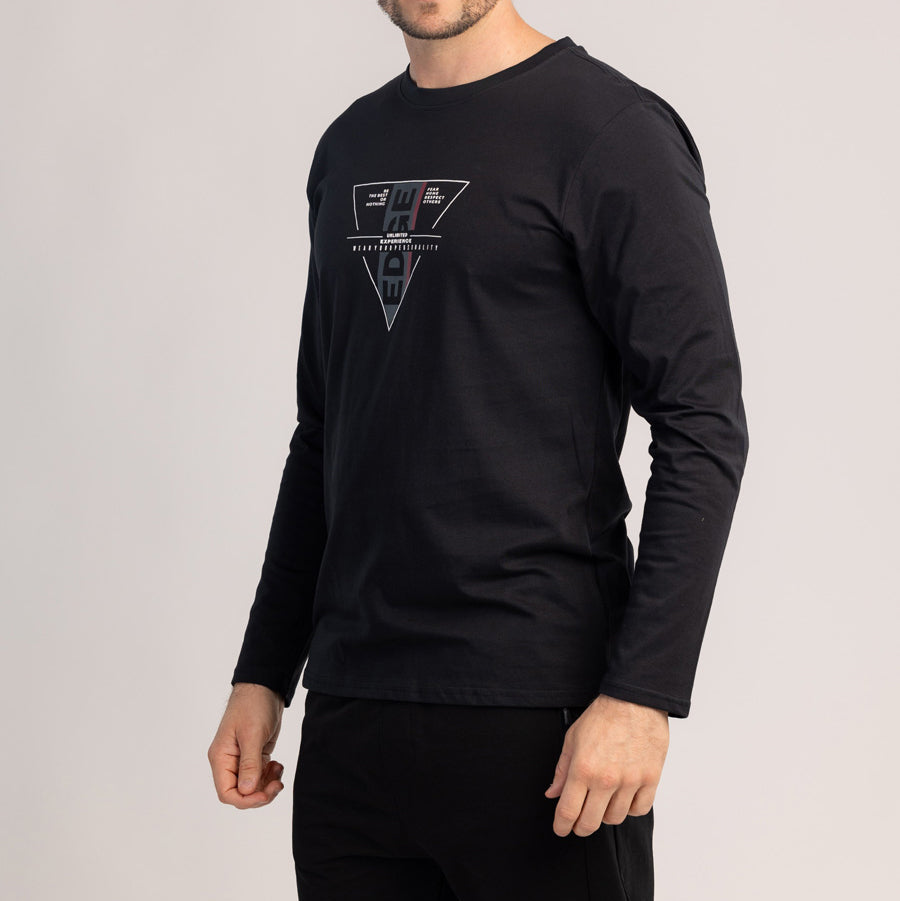 Un tricou cu mânecă lungă din bumbac care combină confortul cu un aspect modern pentru purtare zilnică. Materialul moale și respirabil îmbrățișează confortabil pielea, în timp ce croiala clasică asigură o potrivire perfectă, fără restricții.