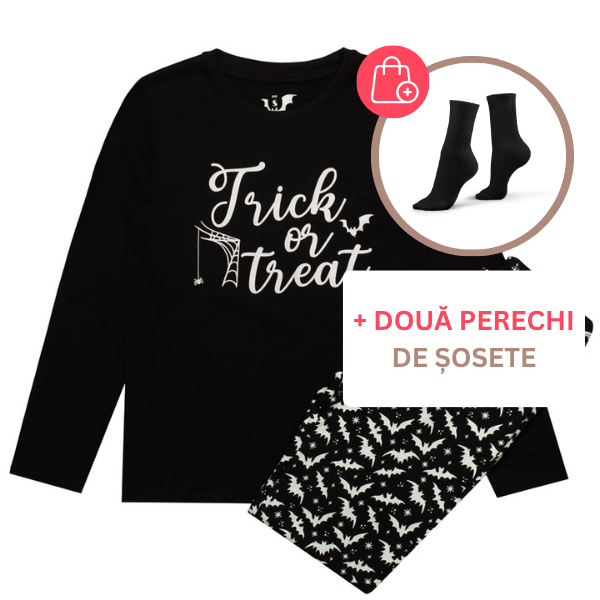 Pijamalele pentru copii NightHowl, elegante, negre, cu un motiv distractiv de Halloween, aduc confort și un spirit aventuros în fiecare noapte.