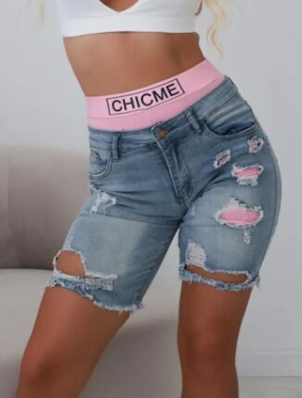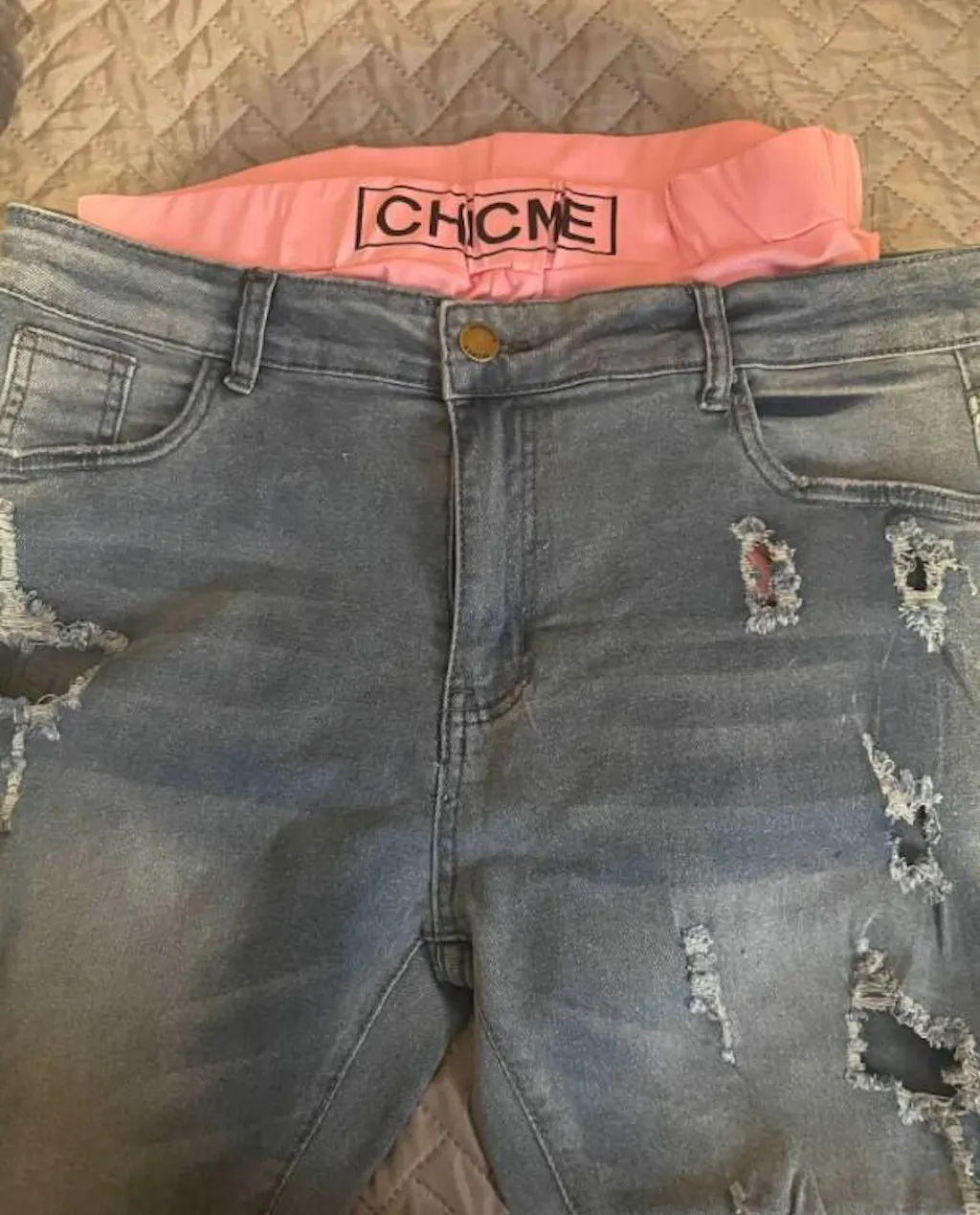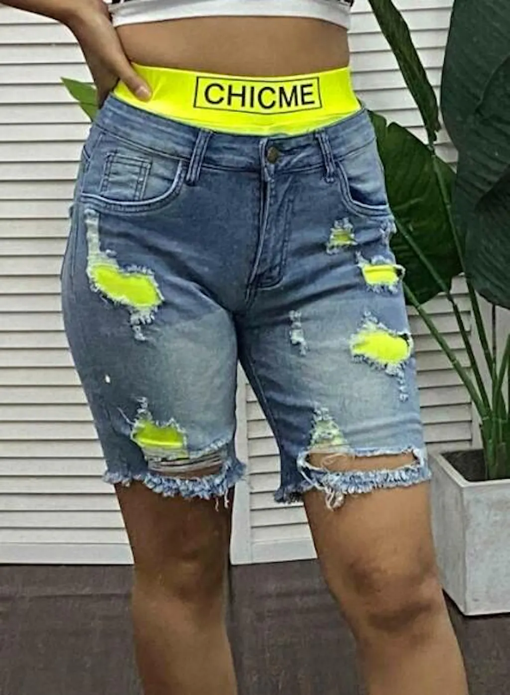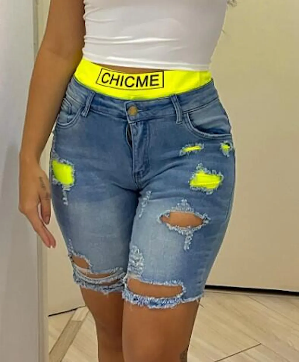 PANTALONI SCURȚI DE DAMĂ DIN DENIM CARE SE POT PURTA ÎN DOUĂ MODURI PATCHFUSION