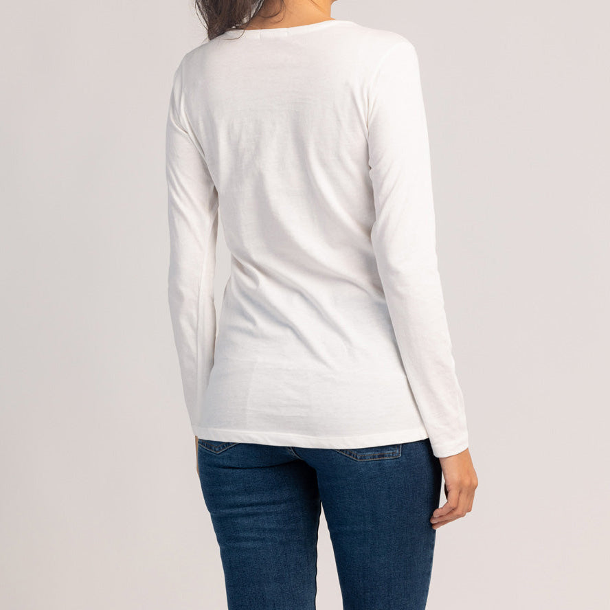 Un tricou cu mânecă lungă din bumbac care combină confortul și un aspect modern pentru purtare zilnică. Materialul moale și respirabil îmbrățișează confortabil pielea, în timp ce croiala clasică asigură o potrivire perfectă, fără restricții.
