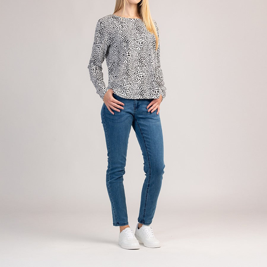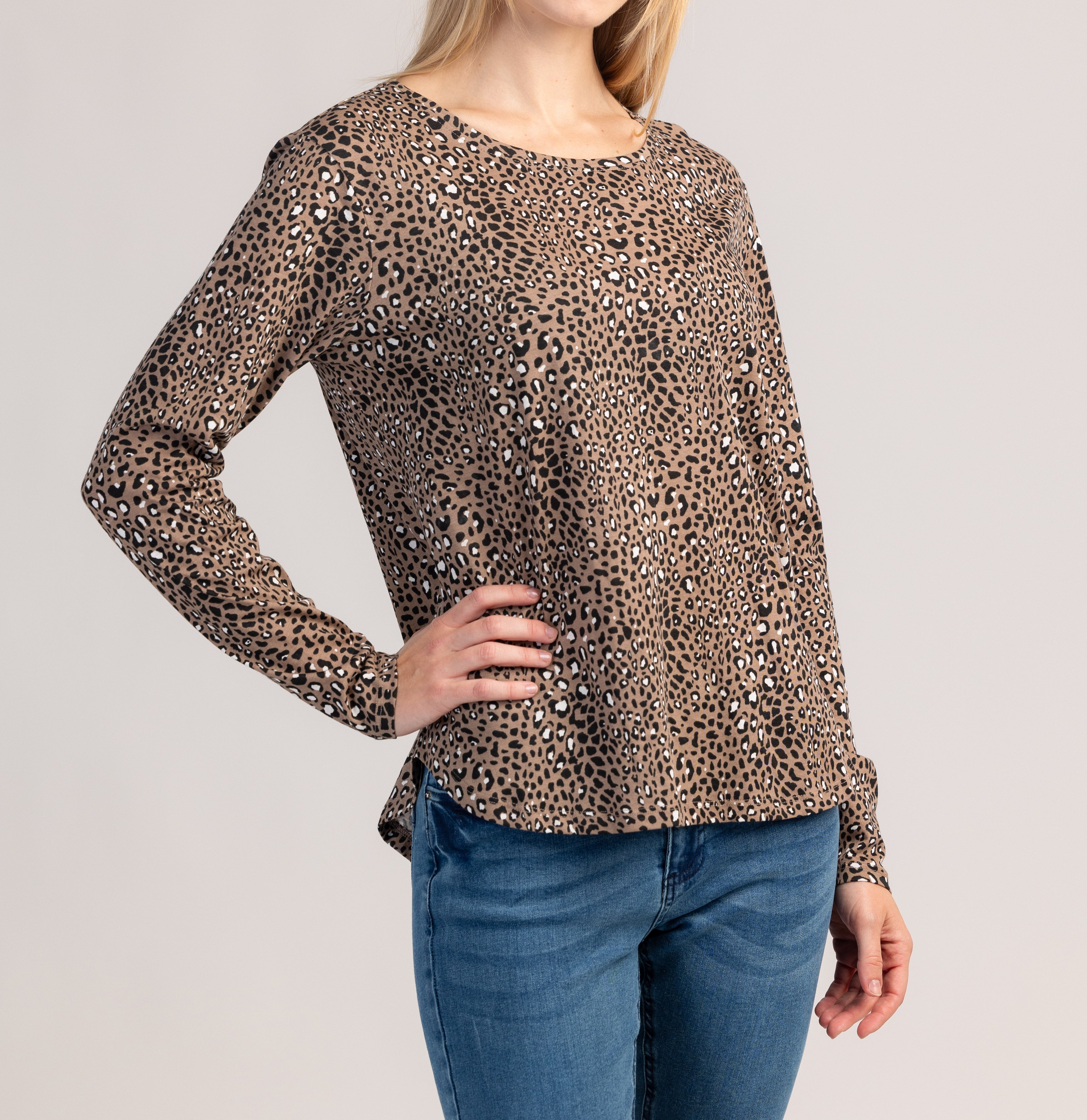 Un tricou cu mânecă lungă din bumbac care combină confortul și un aspect modern pentru purtare zilnică. Materialul moale și respirabil îmbrățișează confortabil pielea, în timp ce croiala clasică asigură o potrivire perfectă, fără restricții.